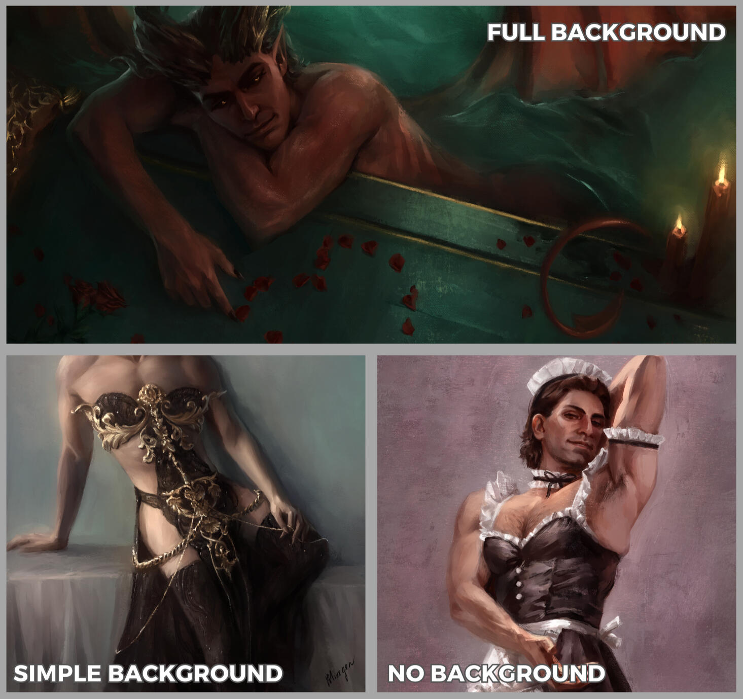 Currently for Character Art I am offering art of adult, fictional humanoid characters.